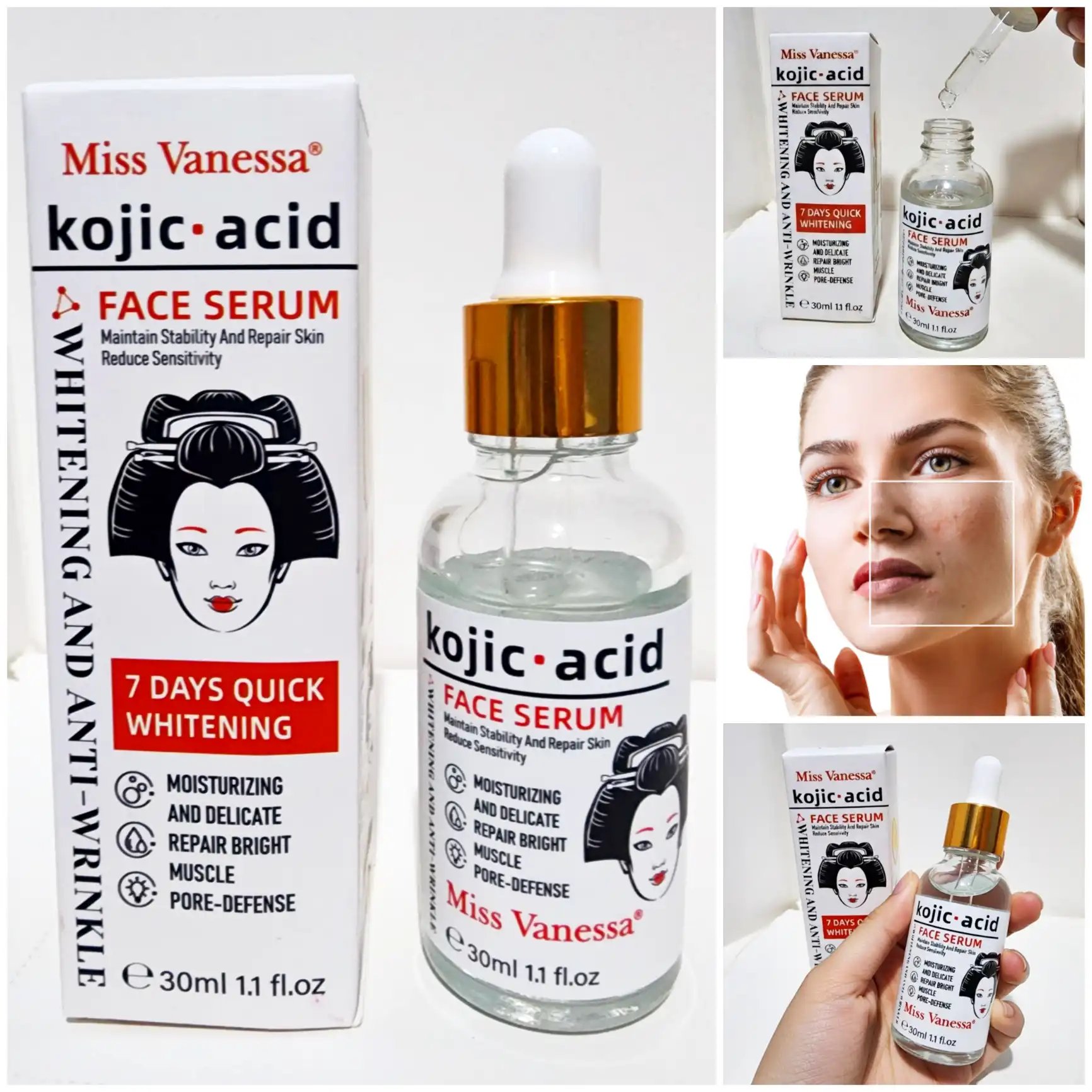 Piel sensible: usar con precaución extrema (hacer patch test, ya que el ácido kójico puede irritar).